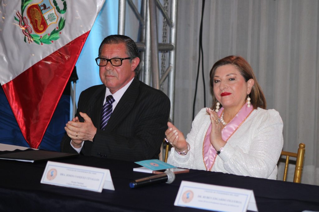 Instantáneas captadas durante la celebración por el 46º Aniversario del Colegio de Enfermeros del Perú, realizado en el Salón Bolognesi – Asociación Círculo Militar del Perú, ubicado en el distrito de Jesús María, actividad que contó con la presencia de nuestra Decana Nacional del CEP, Dra. Josefa Edith Vásquez Cevallos acompañada del Viceministro de Prestaciones y Aseguramiento en Salud, Dr. Herbert Cuba García en representación del Ministro de Salud, Dr. Cesar Vásquez y de la Vicedecana del CEP, Lic. Ana Mercedes Zúñiga Medina quienes conformaron la mesa central de honor.