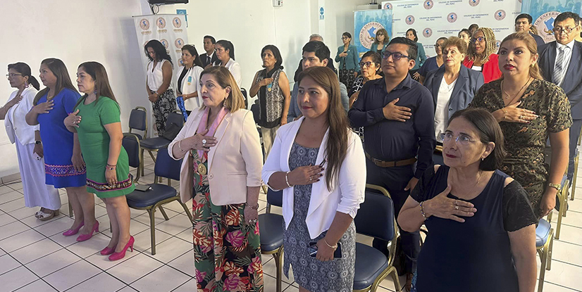 En el marco del cumplimiento del Estatuto que rige la vida institucional y todos sus estamentos, promueve la vigilancia ética y deontológica, así como el desarrollo de nuestra profesión desde un ámbito científico y humanístico. La Decana Nacional del Colegio de Enfermeros del Perú, Dra. Josefa Vásquez Cevallos junto a su Consejo Directivo Nacional del CEP formaron parte de la “Ceremonia de Juramentación de Registro Temporal de Sociedades y Asociaciones Científicas de Enfermería”, donde la Presidenta de la Asociación Peruana de Enfermeras en Ortopedia y Traumatología – APEO, Mg. Rocio Maribel Coasaca Taca y la Presidenta de la Asociación Científica Peruana del Lenguaje Enfermero – ASOCIPELE, Mg. Ruth María Bardón Matos junto a sus juntas directivas juramentaron en el auditorio Central del CEP, ubicado en el distrito de Jesús María.