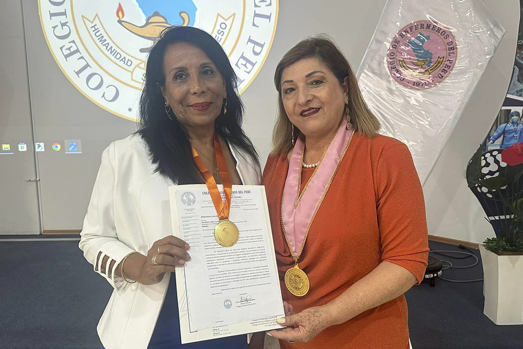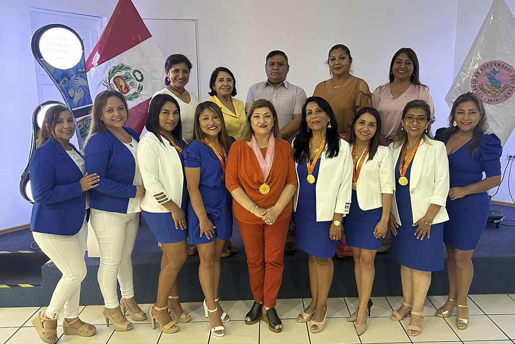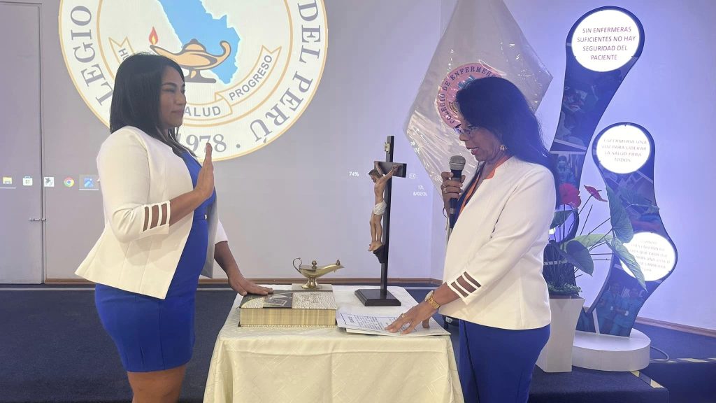Continuando con el marco del cumplimiento del Estatuto que rige la vida institucional y todos sus estamentos, promoviendo la vigilancia ética y deontológica, así como el desarrollo de nuestra profesión desde un ámbito científico y humanístico. La Decana Nacional del Colegio de Enfermeros del Perú, Dra. Josefa Edith Vásquez Cevallos junto a su Consejo Directivo Nacional del CEP formaron parte de la “Ceremonia de Juramentación de Registro Temporal de Sociedades y Asociaciones Científicas de Enfermería”, donde la Presidenta de la Sociedad de Enfermeras Latinoamericanas en Heridas – SELH, Mg. Ana María Cabello Lostaunau junto a su junta directiva juramentaron en el auditorio Central del CEP, ubicado en el distrito de Jesús María.