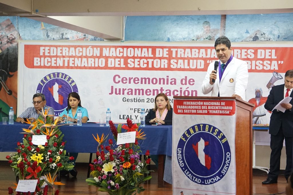 Gervacio presidió la juramentación quien junto a su Comité Ejecutivo Nacional de la Federación Nacional de Trabajadores del Bicentenario del Sector Salud se mostraron muy felices y orgullosos por la labor que han desempeñado por todo el personal de salud.