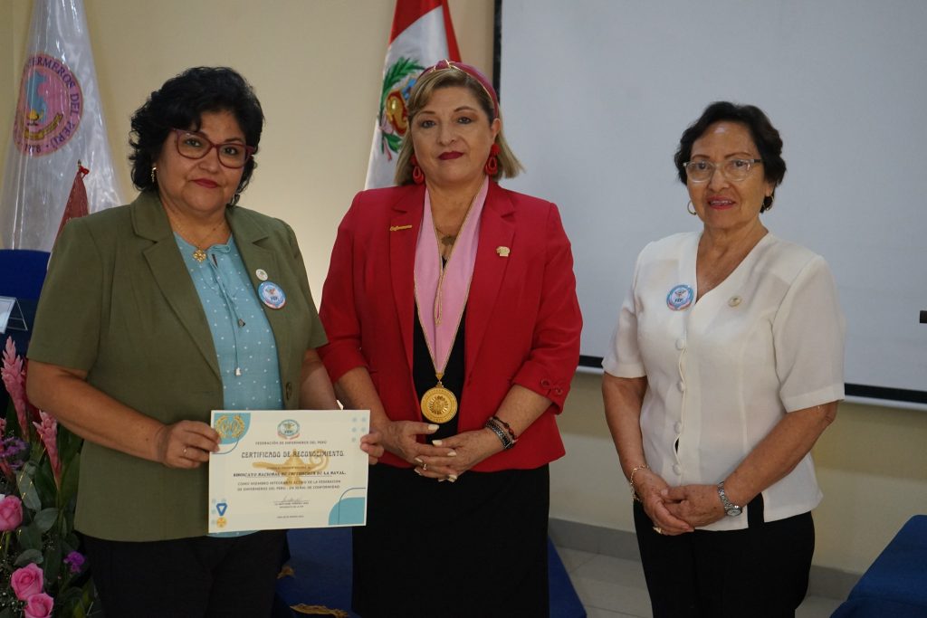 #NoticiasCEP / Nuestra Decana Nacional del CEP, Dra. Josefa Vásquez Cevallos junto a parte del Consejo Directivo Nacional, Lic. Rosa Tuse Medina (Secretaria ll) y la Mg. Magdalena Rojas Ahumada (Vocal l) formaron parte de la ceremonia del 60º aniversario de la federación de Enfermeras del Perú FEP realizado hoy por la mañana en el auditorio del Consejo Regional lll Lima Metropolitana.