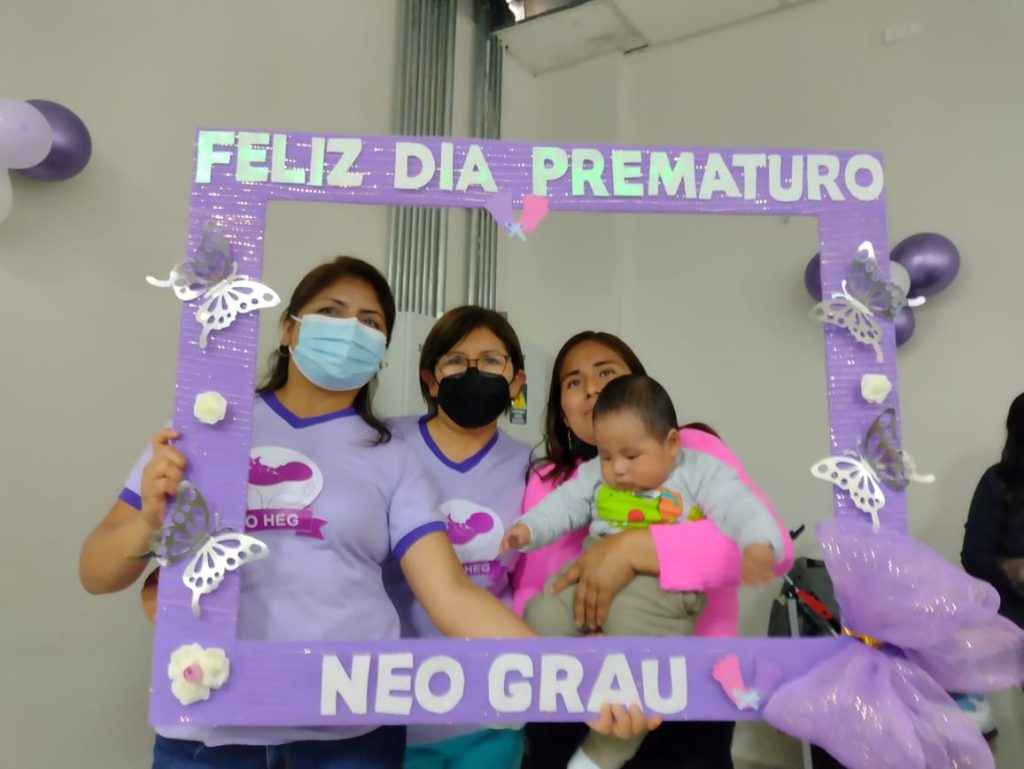 Por el marco de la celebración del día mundial del bebe prematuro el servicio de Neonatología del Hospital Emergencias Grau realizó una breve ceremonia junto a los papis y mamis que asistieron a la actividad, donde se destaco la presencia de nuestras colegas que brindaban orientación e información sobre la temática del día.
