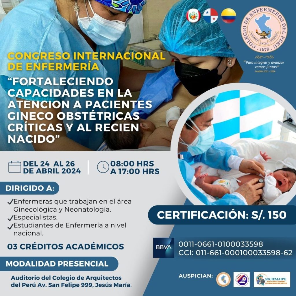 CONGRESO INTERNACIONAL DE ENFERMERÍA: “FORTALECIENDO CAPACIDADES EN LA ATENCION A PACIENTES GINECO OBSTÉTRICAS CRÍTICAS Y AL RECIEN NACIDO”CONGRESO INTERNACIONAL DE ENFERMERÍA: