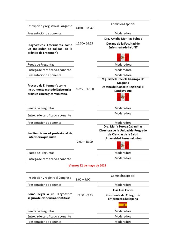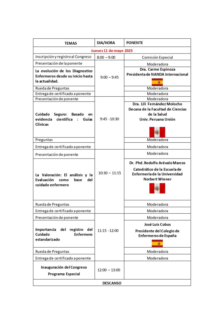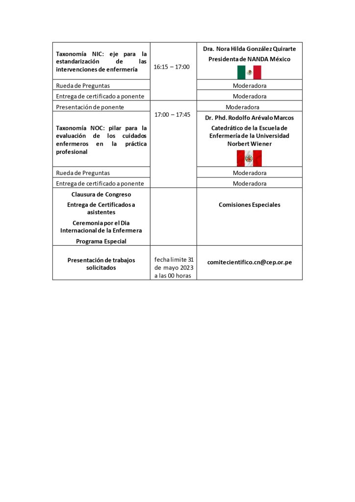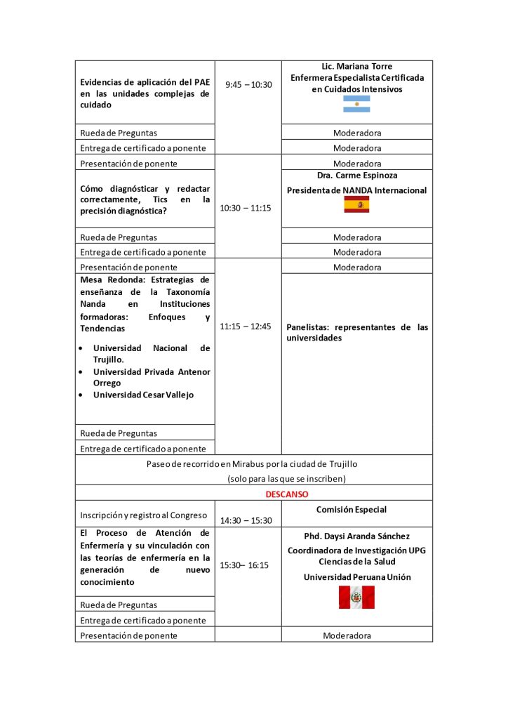 | Mesa Redonda: Estrategias de enseñanza de la Taxonomía NANDA en Instituciones formadoras: Enfoques y Tendencias | Representantes de las universidades |
