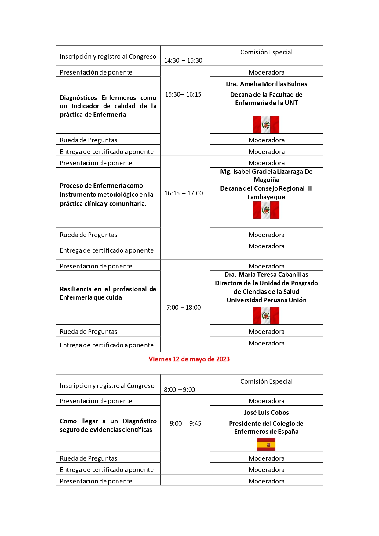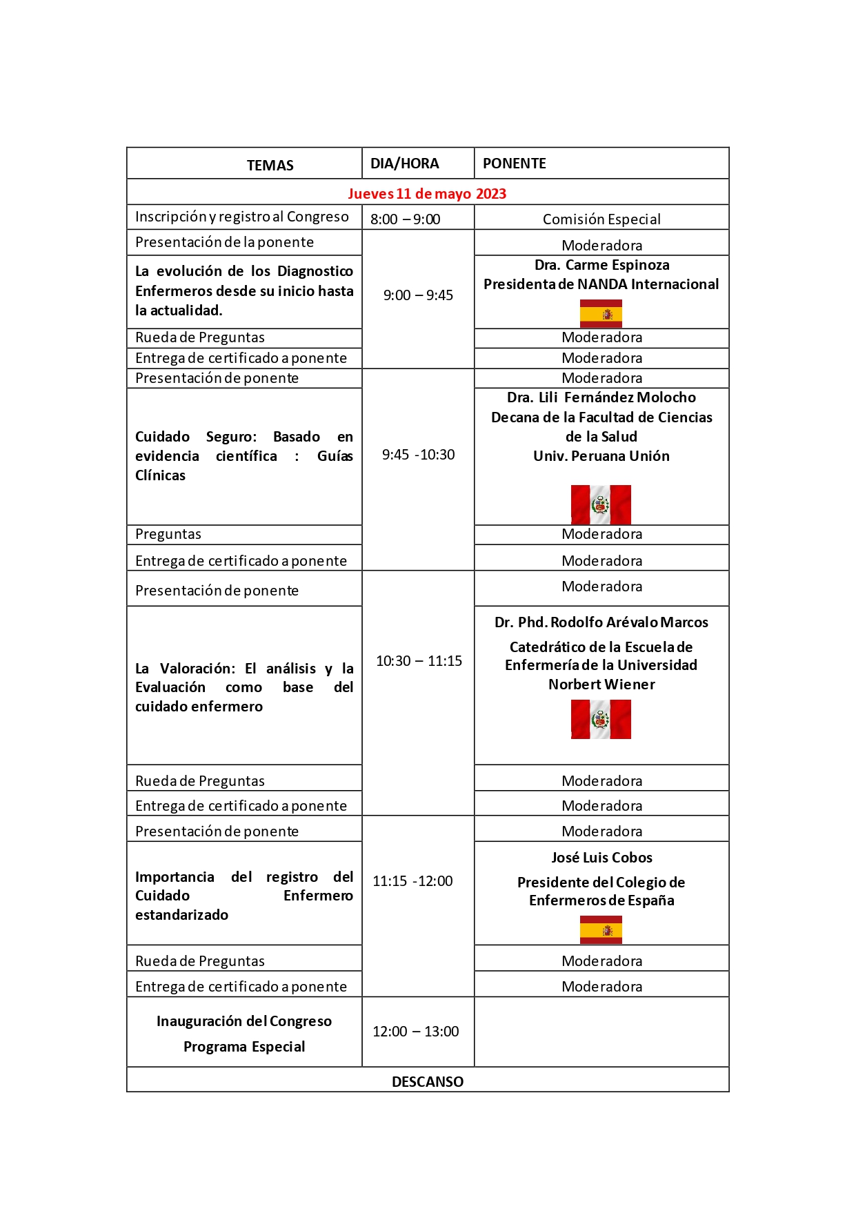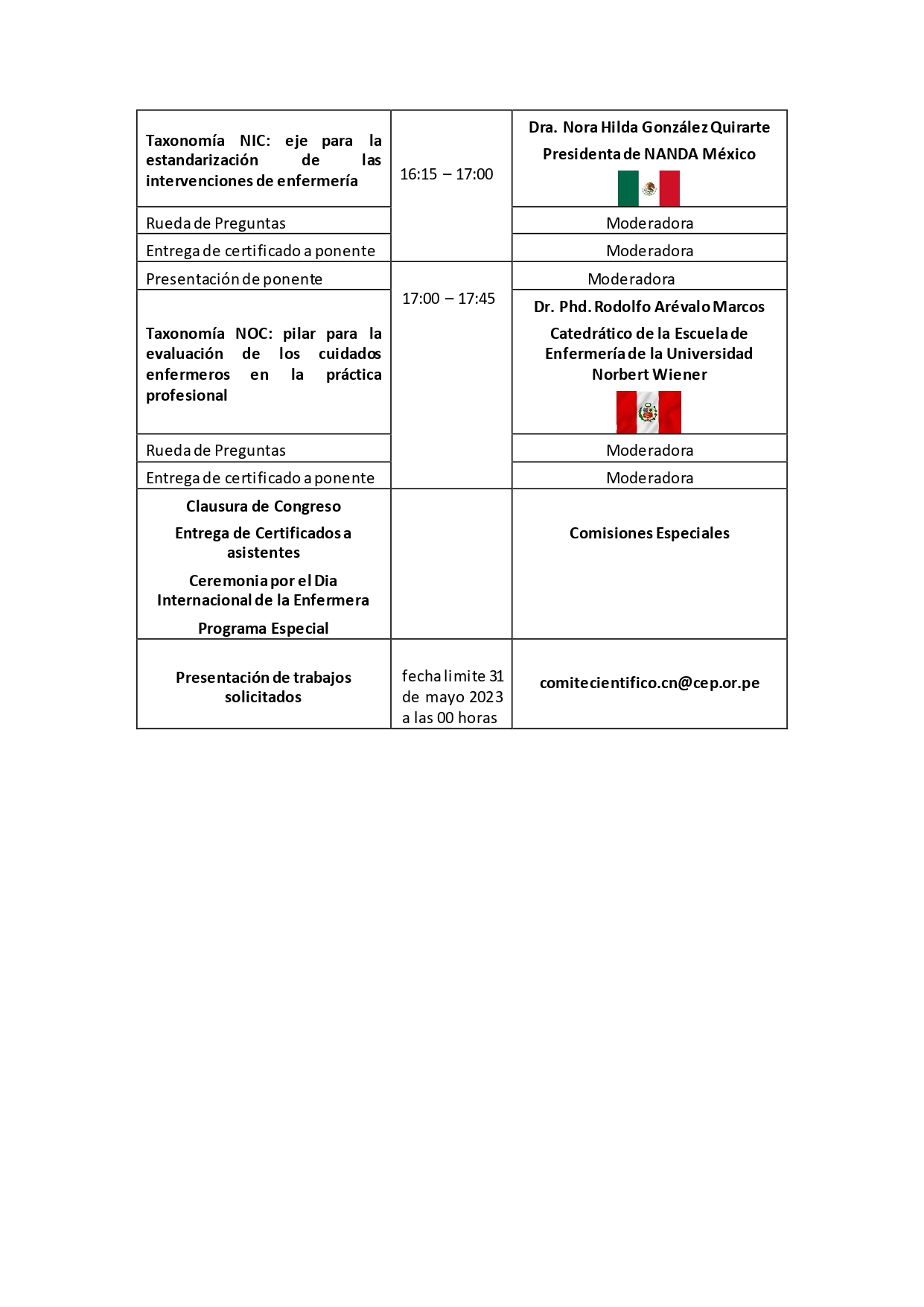 | Mesa Redonda: Estrategias de enseñanza de la Taxonomía NANDA en Instituciones formadoras: Enfoques y Tendencias | Representantes de las universidades |