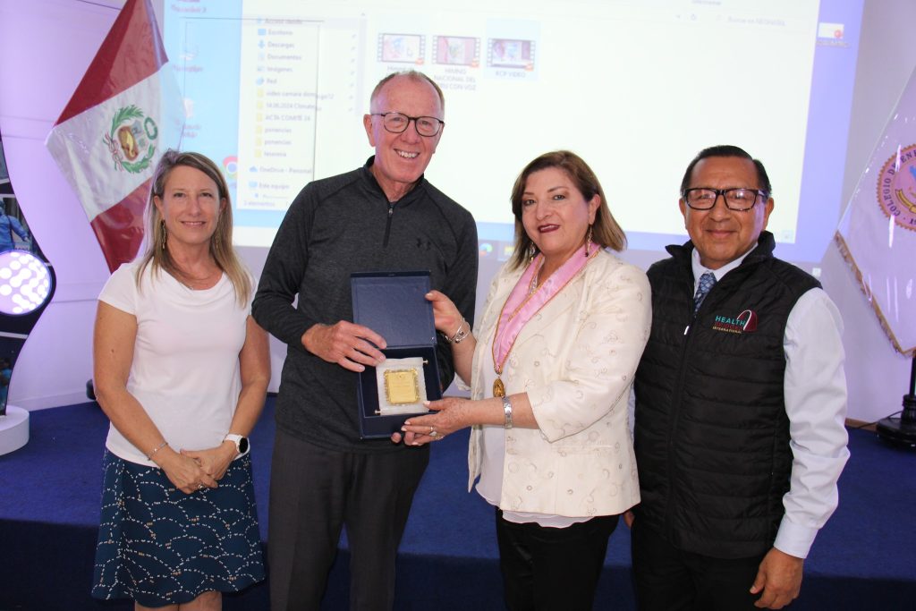 La Decana Nacional del Colegio de Enfermeros del Perú, Dra. Josefa Edith Vásquez Cevallos reconoció mediante una ceremonia de clausura el trabajo que viene realizando el Colegio de Enfermeros del Perú (CEP) y Health Bridges International (HBI) al brindar los Cursos Talleres descentralizados de “RCP BÁSICO NEONATAL”, el cual cuenta con tres facilitadores expertos: Dr. Robert Gehringer, el Dr. Roberto Tarazona y la Dra. Mary Boyer quienes desarrollaron el modelo RCP Neonatal en las filiales o Colegios Regionales de Enfermería (CRE) en beneficio de los enfermeros y enfermeras de la especialidad de neonatología a lo largo del país, gracias a la alianza estratégica interinstitucional entre el CEP y HBI, con la finalidad de fortalecer las competencias en Reanimación Neonatal brindando capacitaciones intensivas a los miembros de la orden.