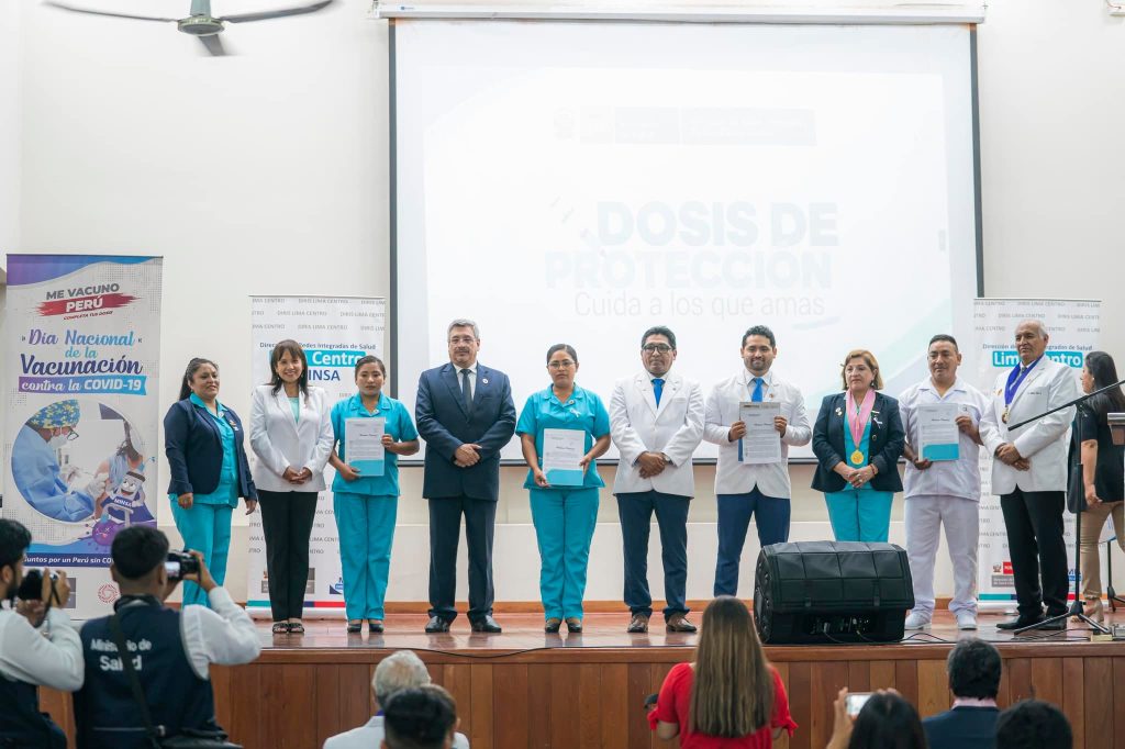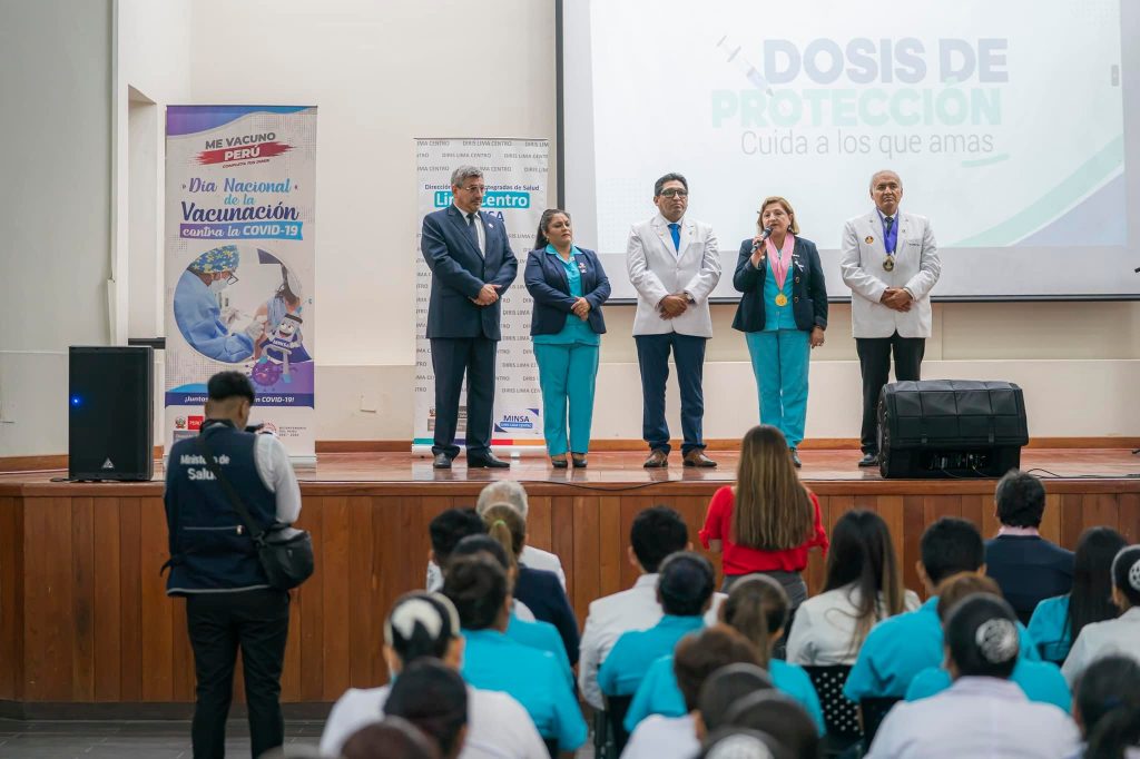 🔵 Durante el mencionado evento se contó con la presencia del Director General de la Diris Lima Centro, Dr. Martín Gutiérrez Zapata; el Decano Regional del Colegio Médico del Perú, Dr. Idauro Aguirre Sosa; La Coordinadora de Inmunizaciones de la Diris Lima Centro, Lic. Marisol Salcedo.