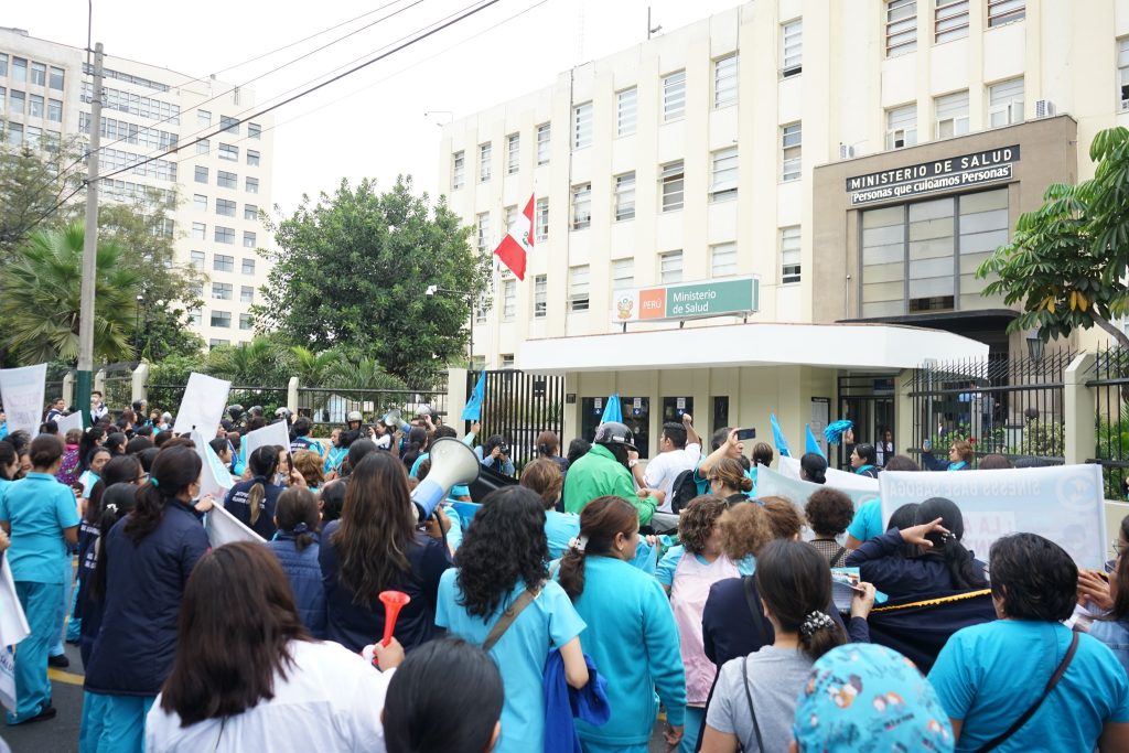 📌Momentos después de la concentración en el frontis de ESSALUD el plantón se dirigió tano al frontis del MINSA y del MINTRA donde nuestras colegas estuvieron presentes dirigiendo sus reclamos hacia las autoridades competentes buscando así un dialogo que finiquite con esta terrible situación que no deja que enfermería tome el rol fundamental y completo que se necesita.