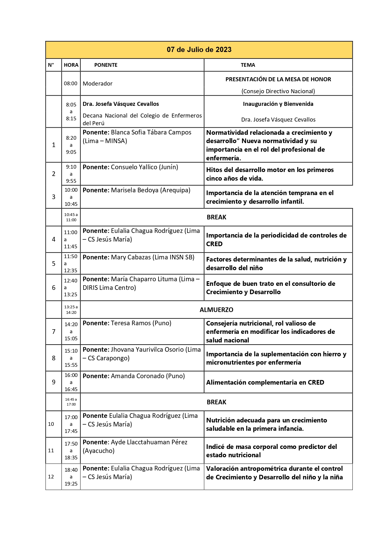 Cabe mencionar que el Colegio de Enfermeros del Perú, como parte del ejercicio de sus actividades está el de la protección y recuperación de la salud de la población, tiene a bien en ese marco, facilitar el desarrollo de las competencias del profesional de enfermería en los cuidados del lactante, preescolar, escolar y adolescente, contribuyendo de esta manera en el perfeccionamiento del profesional de enfermería que sirve al país.