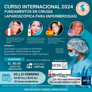 El Colegio De enfermeros Del Perú, en el ejerció de sus atribuciones de asegurar la calidad del desempeño y de fortalecer el desarrollo profesional a los miembros de la orden, ha programado el presente curso Nacional: CURSO INTERNACIONAL: FUNDAMENTOS EN CIRUGIA LAPAROSCOPICA PARA ENFERMEROS(AS).