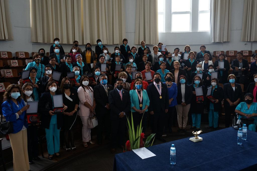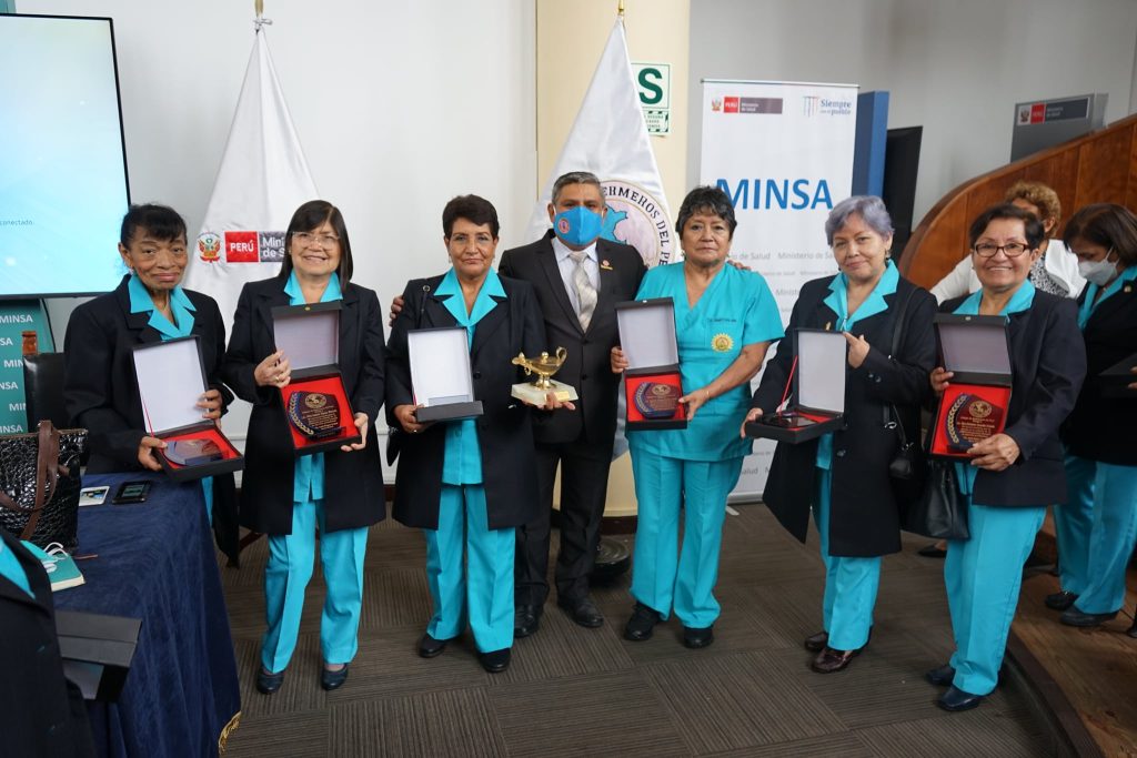 En el paraninfo del Ministerio de Salud (MINSA) se realizo el reconocimiento a la enfermera jubilada en la pandemia del Covid19.